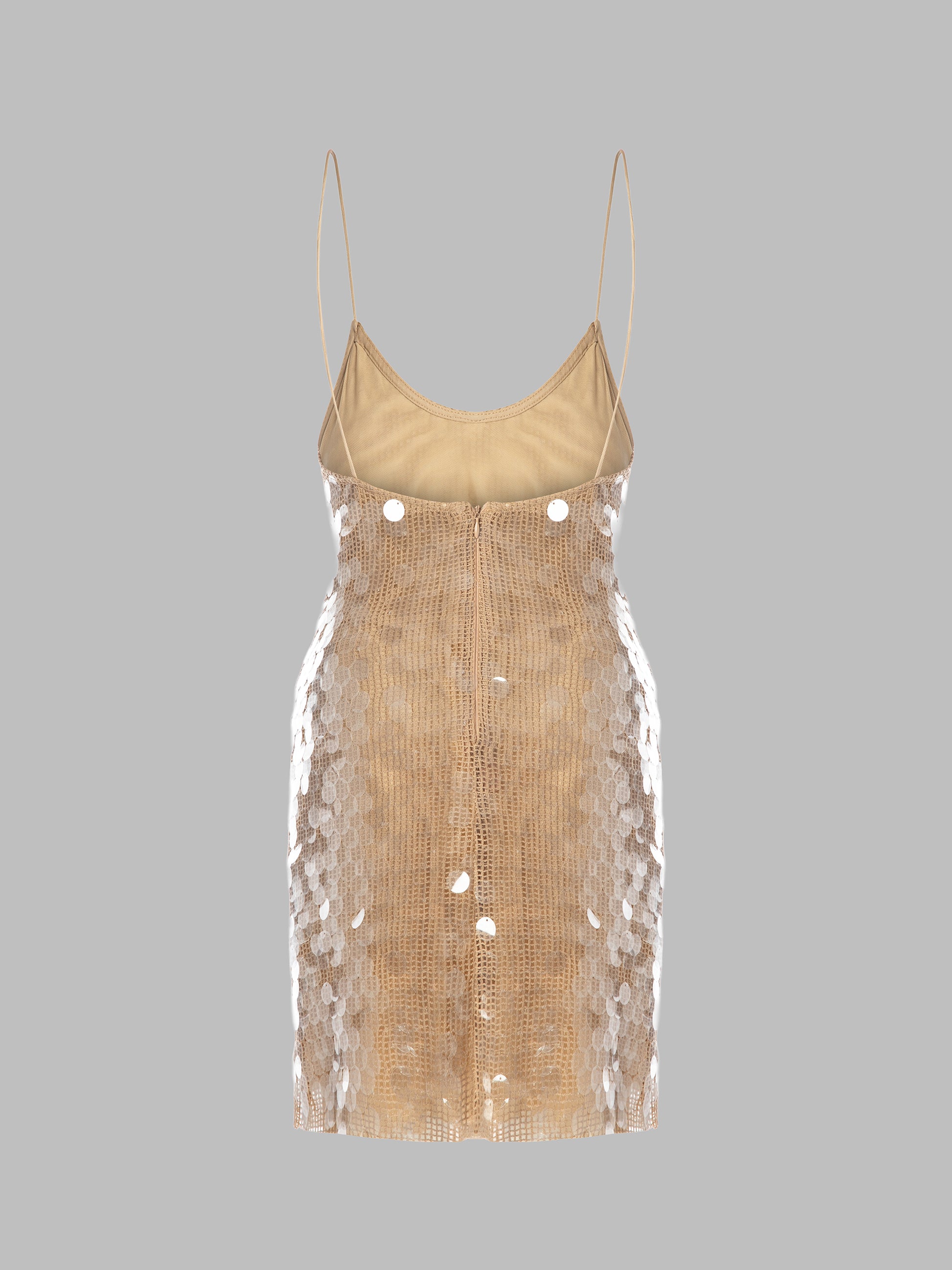 . İnce askılı, payetli mini elbise